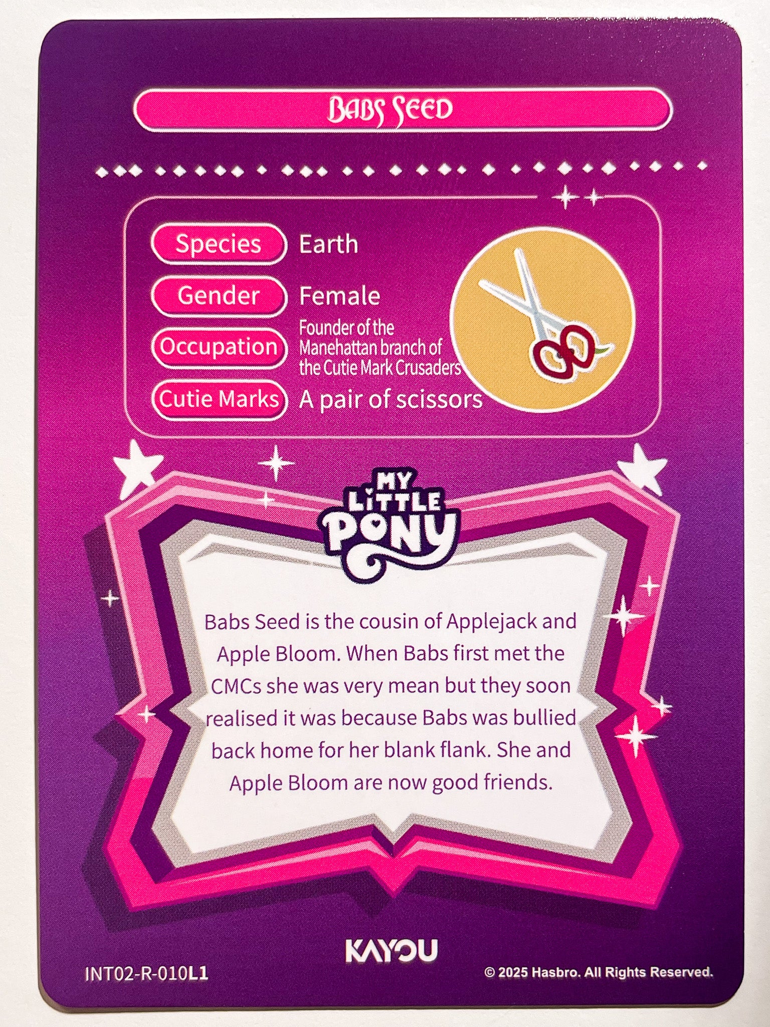 Near mint Official Kayou My little pony cards - Babs Seed (R) INT02-R-010 L1