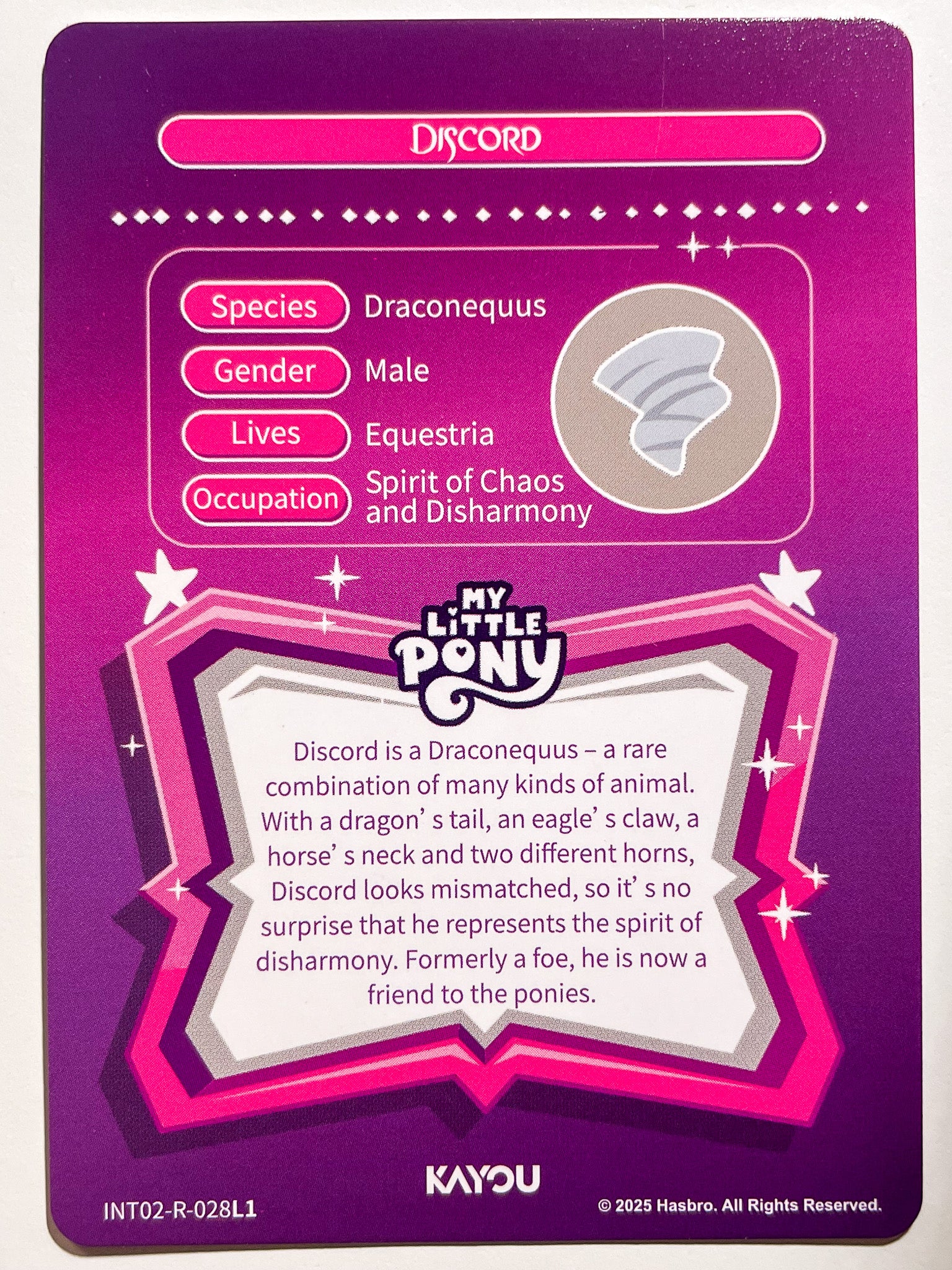 Near mint Official Kayou My little pony cards - Discord (R) INT02-R-028 L1